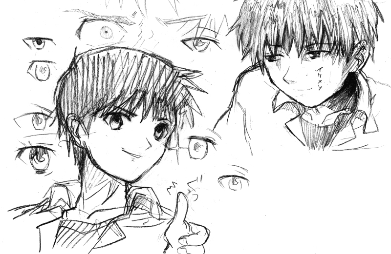 シンジ君を練習するには資料集片手に描くのが一番じゃないかと思って。目がいっぱいなのはきっと今の描き方が気に入らないから。固定されない現状をどうにかしたい…