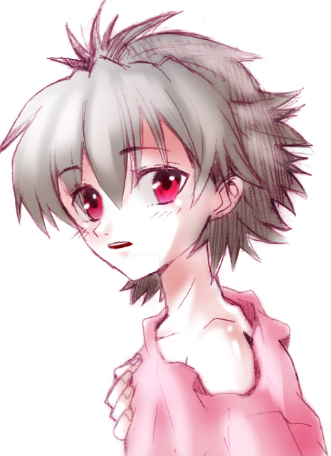 今回は微妙にえっちいのにしようかと。シンジも描いてツーショ^^UCCカヲル(破)の画像見ながら髪型気をつけたつもりだけど貞カヲっぽくしかならん…あの絵はシャギー入ってるのがたまらんね!あ、シャツはもちピンクで塗るよwハァハァぴんく…